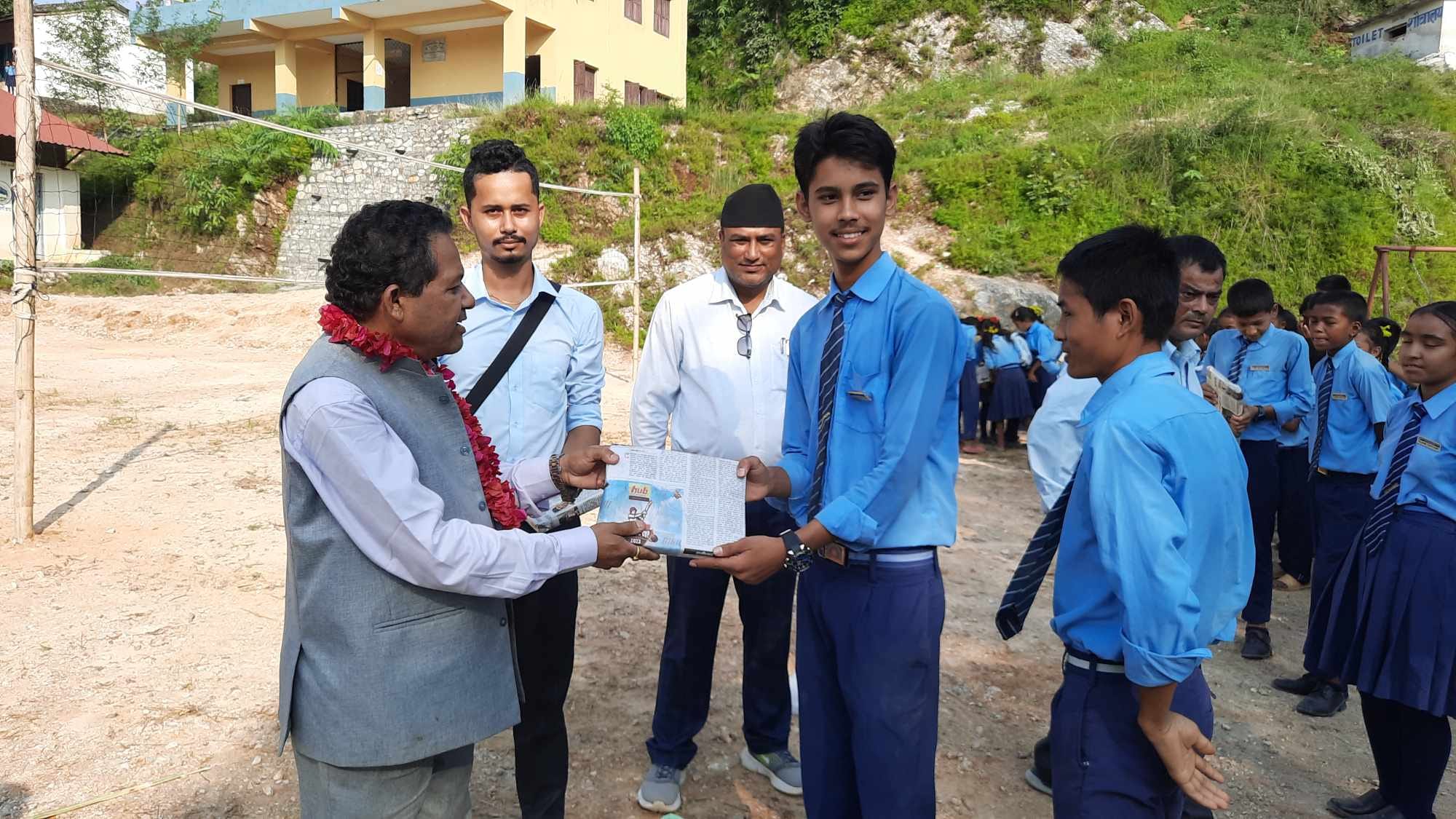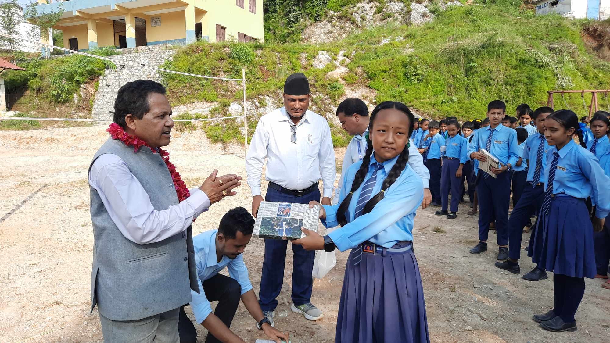 विद्यालयका सहायक प्रधानाध्यापक प्रतापसिंह अधिकारीले सञ्चालन गरेको शैक्षिक सामग्री वितरण कार्यक्रममा कुँवर तथा रुम टु रिडकी सञ्चार अधिकृत निष्ठा श्रेष्ठलाई अविर र खादाले स्वागत गरिएको थियो ।